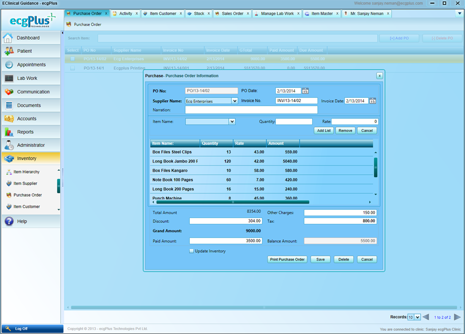 Maintain a track from supply order to delivery, thereby obviating need for frequent stock taking. Automatic alert upon stocks reaching minimum allowable levels further enhance efficiency.
